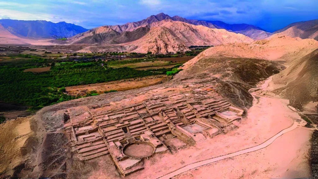 Un par de semanas antes del descubrimiento en La Libertad, Perú presentó al mundo otro hallazgo imponente: la ciudad de Peñico, en la provincia de Huaura, de unos 3.800 años de antigüedad. El asentamiento fue un nodo comercial que conectó la costa del Pacífico con la sierra y la cuenca del Amazonas. También aquí, la huella arqueológica convive con terrenos agrícolas en plena producción.