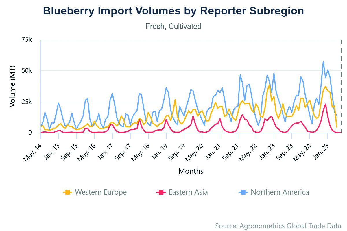 América del Norte (USA), Europa Occidental y últimamente China, han estado consumiendo todo ese arándano.
