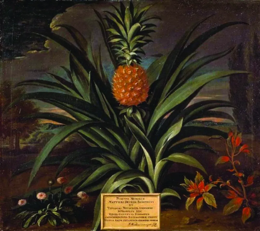 Los jardineros holandeses fueron los primeros en resolver el problema de la piña en el siglo XVII. El jardinero de Pieter de la Court descubrió que la corteza que se utilizaba para curtir el cuero, podía generar calor sostenido al descomponerse. Esta técnica pronto llegó a Inglaterra, donde Sir Matthew Decker la utilizó para cultivar la primera piña en suelo inglés, y celebró con orgullo la hazaña mandando a pintar un cuadro (ver imagen).
